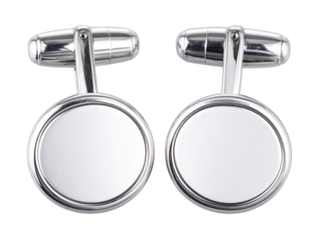 Silver Oval Cufflinks with Closed Fasteners, Top-Down Composition, Transparent Backgroun