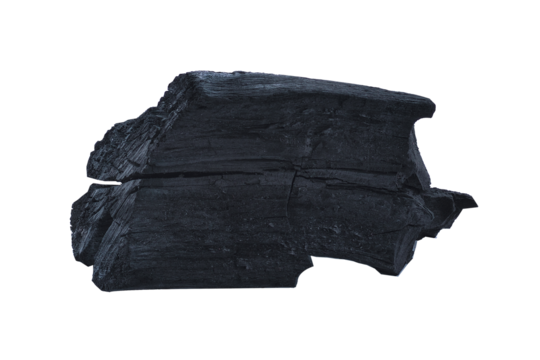 Natural organic wooden charcoal pieces cut out on transparent background. Set of various charcoal for design.