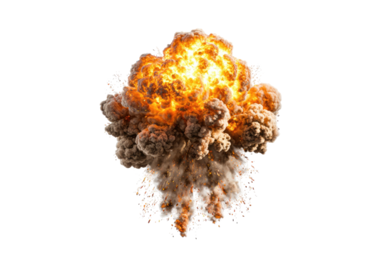 Fiery explosion with smoke and debris isolated on transparent background