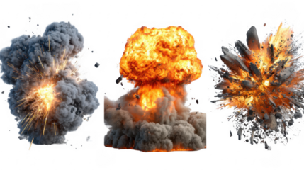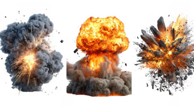 Three Dramatic Explosion Effects Fire Smoke Debris for VFX Compositing