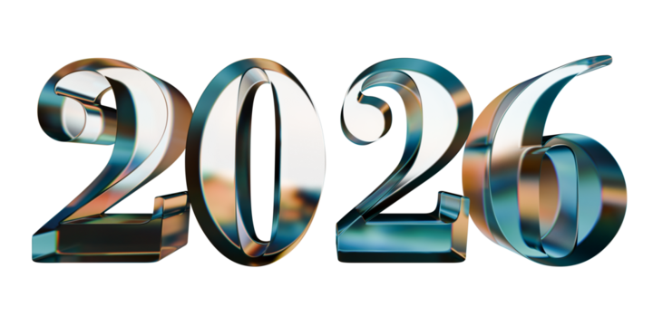 Happy new year 2026 isolated 3d illustration glass letter