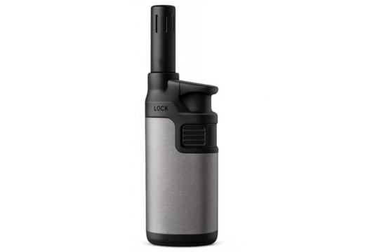 Professional culinary torch for creme brulee and cooking with adjustable flame and safety lock feature on transparent background