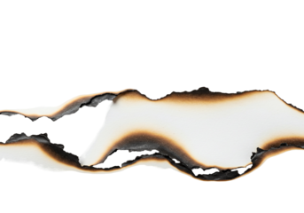 Burnt paper edge with dark scorch marks and curved burned shape