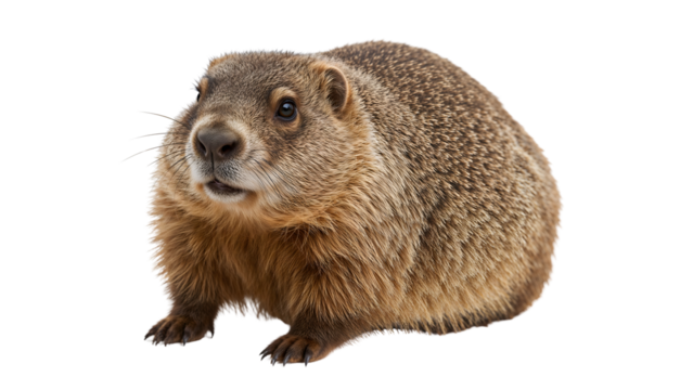 Closeup of a groundhog on the transparent background, fluffy brown fur, rodent mammal, wildlife animal portrait, curious expression