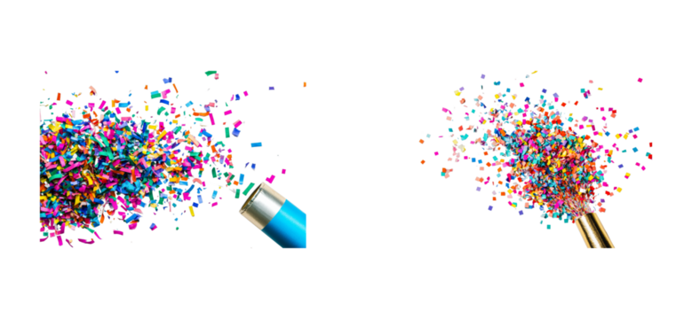Confetti bursts from colorful party poppers isolated on transparent background