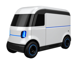 Angled Perspective Delivery Robot with Illuminated Blue LEDs, Isolated PNG