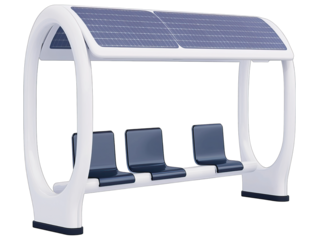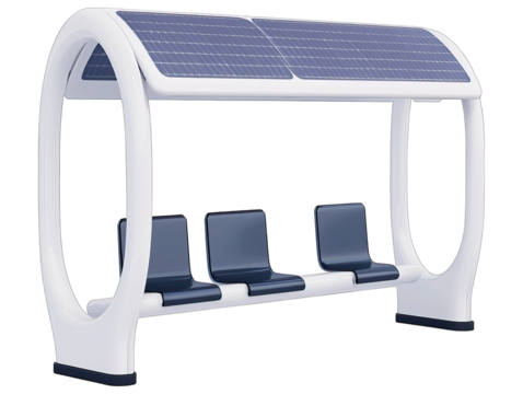 modern solar powered bus shelter with sleek design and seating, promoting sustainable transportation solutions
