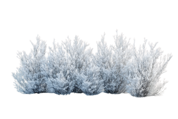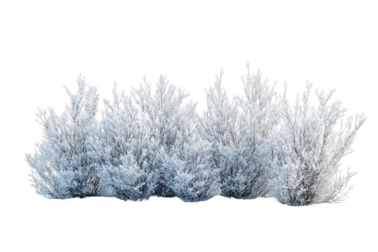 White frost covered bush isolated on transparent background, PNG