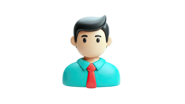 3D Cartoon Man Icon with Teal Shirt and Red Tie