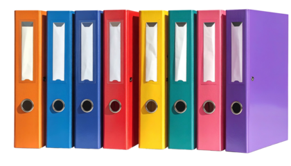 Diverse Row of Old and New Office Binders Archive and Organizational Collection. clipping path, Business concept, PNG, graphic resources.