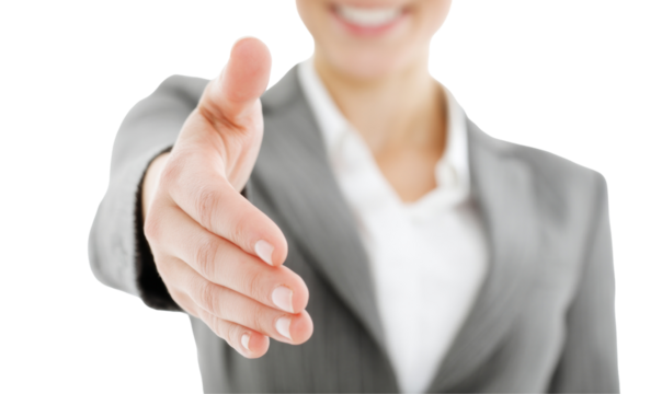 Professional Business Person Extending Hand for a Firm Handshake in a Business Environment