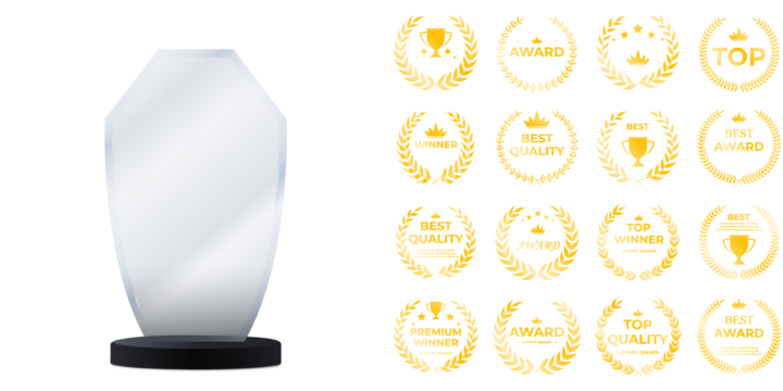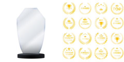 Elegant glass award trophy template with clean transparent plaque, customizable arrow shape, and soft glowing reflections ideal for business awards, corporate presentations, and premium mockup designs