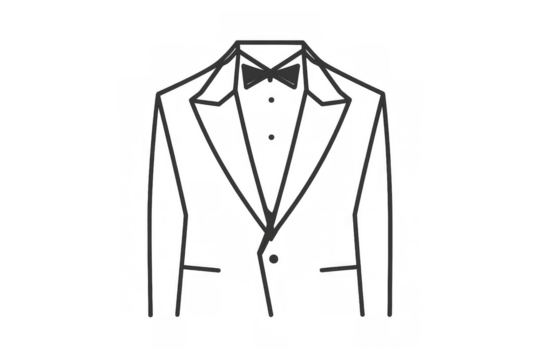 Tuxedo outline with bow tie concept. Formal wear icon representing elegance, gentlemen, and black tie events