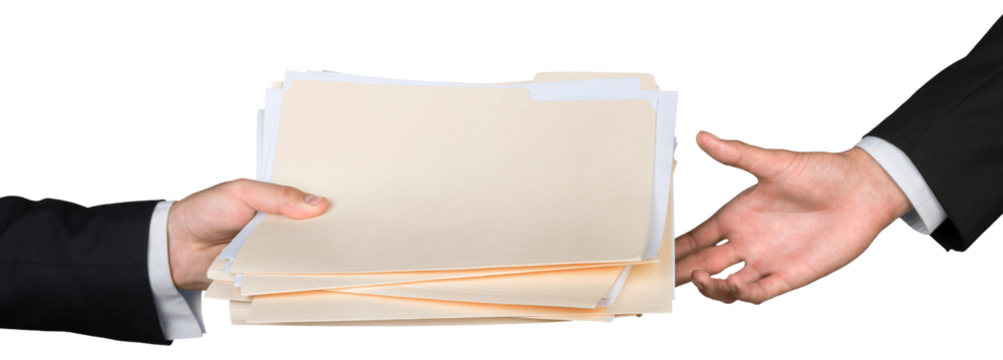 Closeup of Businesspeople Handing File Folders