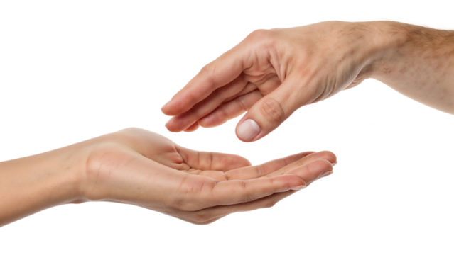 Two Hands in Giving and Receiving Gesture on White Background for Support, Help, and Connection Concepts Transparent PNG