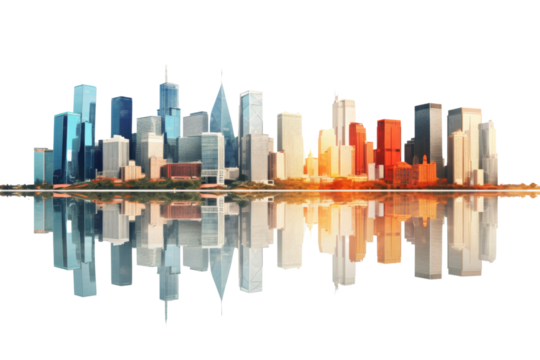 Transparent view of modern skyline with sleek business buildings