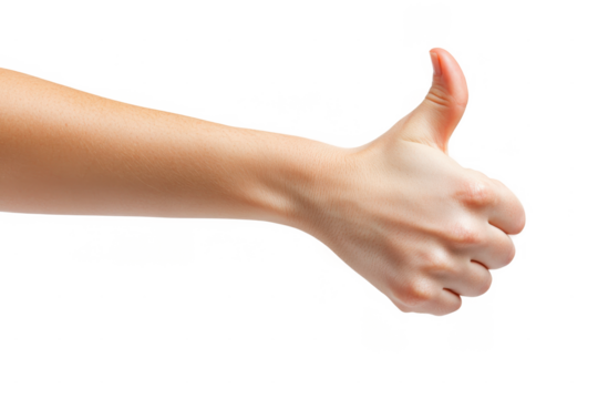 Caucasian Hand Giving Thumbs Up Gesture Isolated on Transparent Background for Business Approval Concept