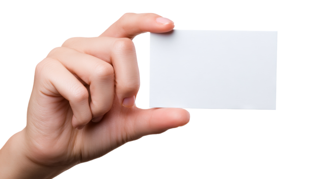 Female hand holding blank credit card isolated on transparent background — high-resolution PNG cutout for e-commerce, payment and banking design mockups, realistic skin tone, close-up with copy space