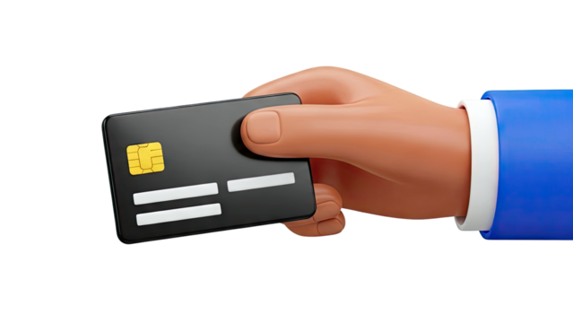 Smart Transaction: Confident individual in a business suit holding a card, a symbol of modern finance. Portraying a blend of professionalism and forward-thinking.