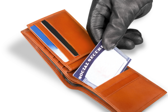 Hand in Glove Stealing a Social Security Card from a Wallet