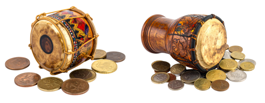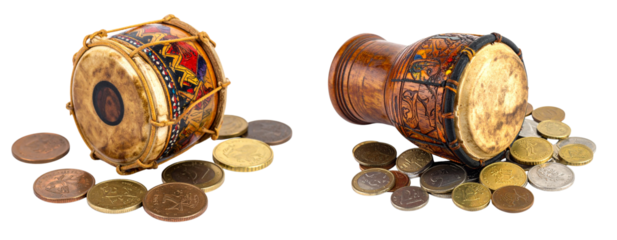 Set of Street Musician Drum with Coins