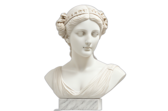 Elegant female bust statue isolated on transparent background, classical sculpture in PNG format for art and design projects
