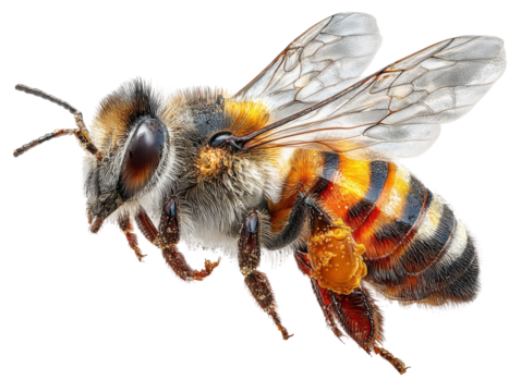 Swarm of bees isolated on transparent background