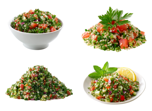 Tabbouleh salad set. arabic salad dish isolated.