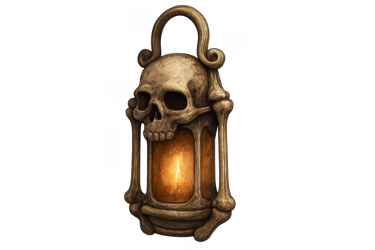 Skull lantern illuminating with spooky gothic bone details
