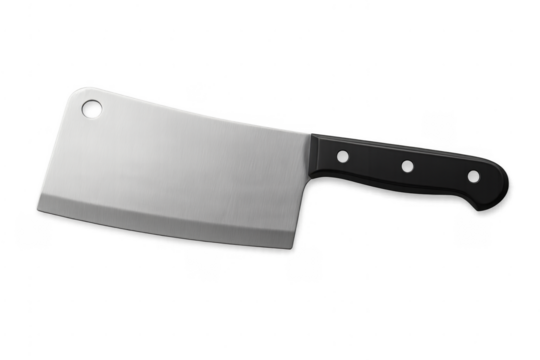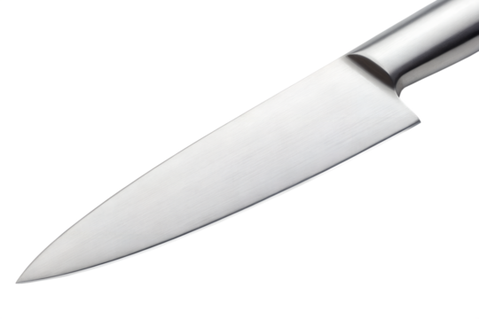 Professional chef knife on a wooden cutting board isolated on transparent background