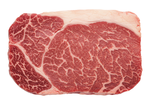 Raw wagyu ribeye steak showing intense marbling, delicious beef cut ready for grilling or cooking, transparent background