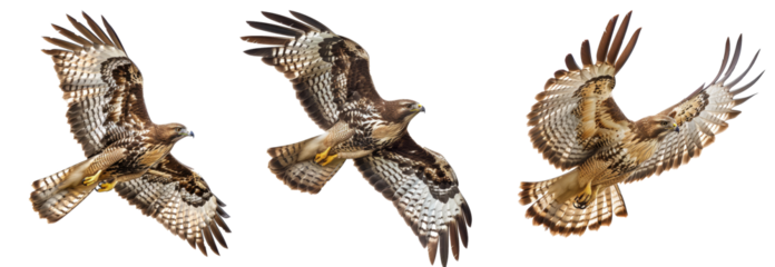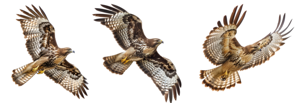 Four majestic buteos, including the rough-legged buzzard (Buteolagopus). PNG on a transparent background
