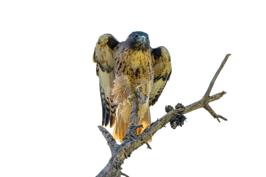 Red-tailed Hawk (Buteo jamaicensis) Photo, Just Landed, on a Isolated, Transparent PNG Background