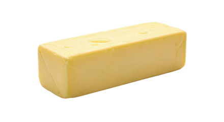A block of butter isolated on transparent background, showcasing its smooth texture and rich flavor, perfect for baking and cooking, adding richness to dishes