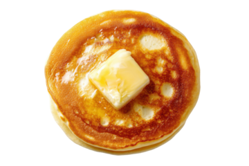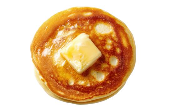 Toasted slice of white bread with a piece of butter melting on it, isolated on transparent background