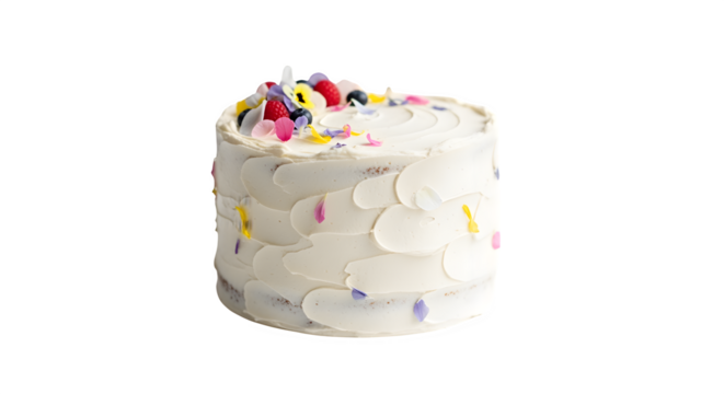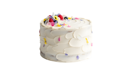 Minimalist white buttercream birthday cake with soft shadows and clean decorations, isolated on a transparent background, PNG
