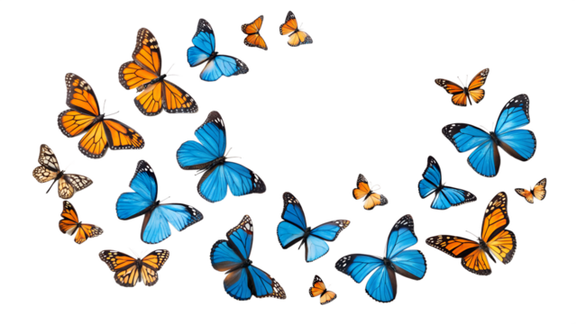 Monarch butterfly flying, elegant insect with colorful orange wings on transparent background, symbol of nature and metamorphosis