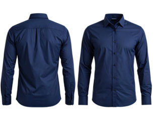 Dark navy blue, long-sleeved dress shirt, front and back view