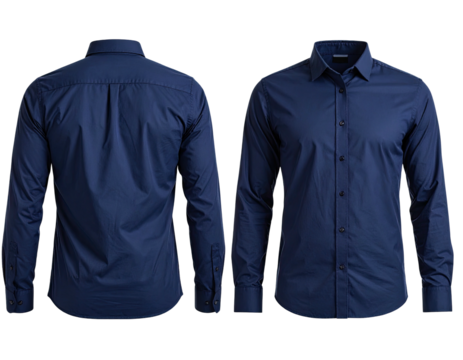 Dark navy blue long-sleeve button-down shirt, front and back views