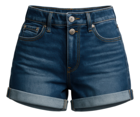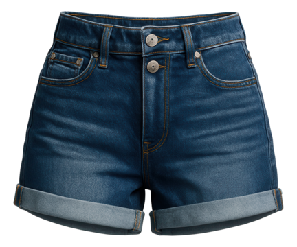 Cuffed denim shorts featuring a double button closure and five-pocket style.