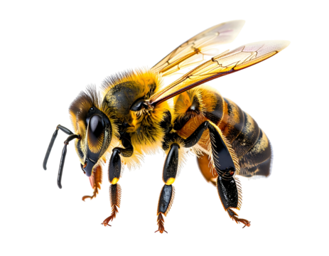 Detailed Macro of Honey Bee in Flight Against Transparent Background
