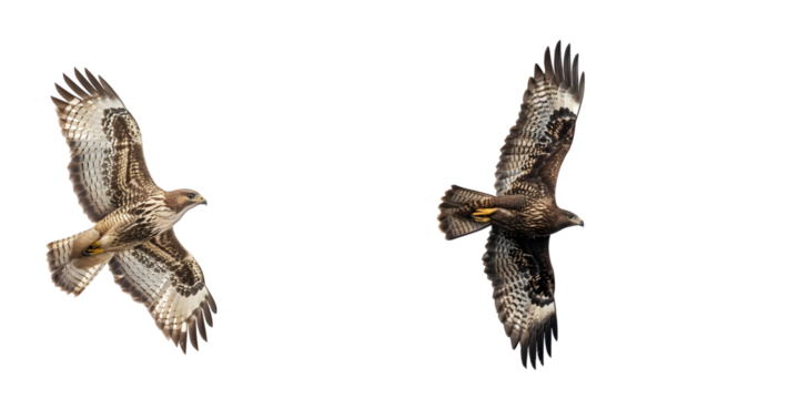Common buzzard with open wings isolated on transparent background, ideal for photo editing and compositions