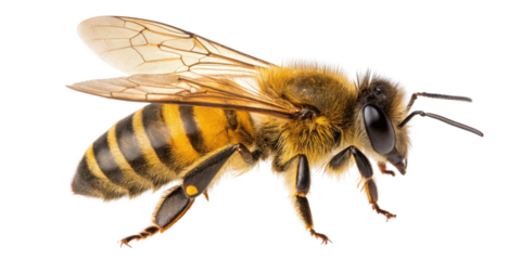 Honey bee isolated on transparent background, showing detailed macro view for nature, ecology, and pollination concepts