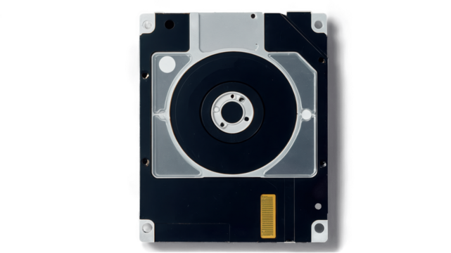 Computer old retro vintage collectibles. black back diskette or floppy disk 3.5 inches with empty label sticker isolated on transparent background or png file.