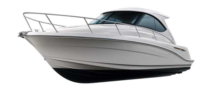 White speedboat with windshield and open cabin isolated on a transparent background white boat yacht