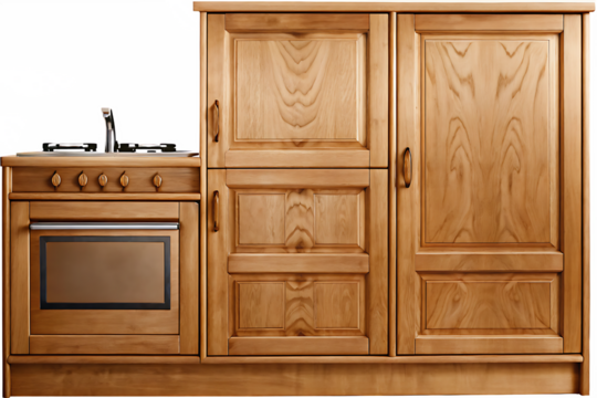 Wooden kitchen cabinet set isolated on a white background png ai generated