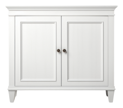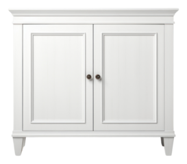 Elegant mid century modern sideboard with white doors isolated.