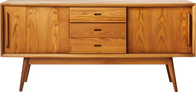 Vintage mid-century modern cabinet with cane webbing design  on Transparent Background