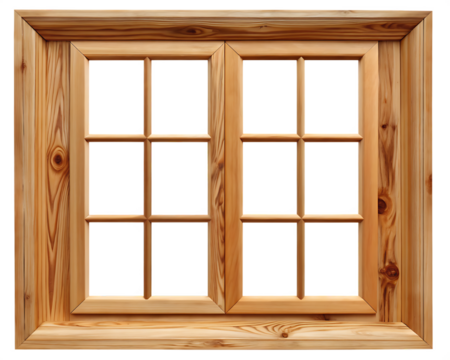Wooden cabin window with eight panes isolated on a transparent background rustic