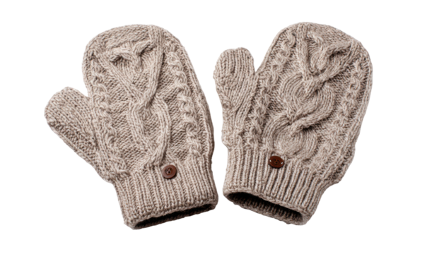 Isolated pair of cable knit fingerless mittens warm winter accessories outdoor wear apparel